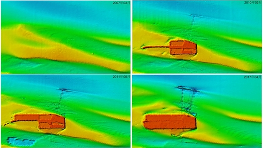 图3.2.2 辐射沙洲中部“离岸人工岛+长栈桥”建港模式的地形稳定性研究