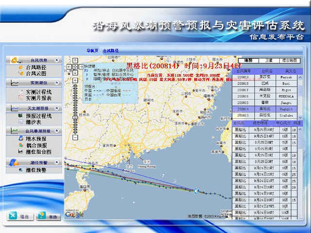 多模式协同沿海风暴潮预警预报实时业务化预报系统。预报成果可直接应用于国家防汛防旱总指挥部办公室台风期间的防汛会商、沿海30个潮位站的风暴潮位过程预报、东南沿海省市海岸防洪预警预报,为沿海地区防御台风决策提供科学依据。