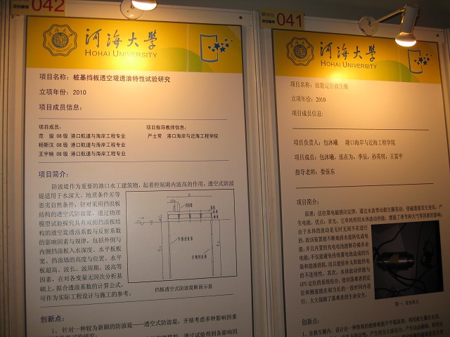 此次北京赛车PK10 共有2项国家大学生创新性实验计划项目参加展示、1项创新性实验计划项目论文参加创新学术年会的交流;在北京赛车PK10 项目展台前,由北京赛车PK10 本科港航专业2008级包沐曦主持负责的项目“波能定位救生圈”与本科港航专业2008级范骏主持负责、严士常老师指导的项目“桩基挡板透空堤透浪特性试验研究”作了项目展板展示并同来自全国各高校的同学与老师进行深入交流,引起了专家和多个高校师生代表的浓厚兴趣。本科2008级港航强化班朱峰在创新学术年会上进行了题为“基于SPH方法的碎片穿甲数值模拟”论文研究内容汇报与学术交流,获得了专家组的好评。