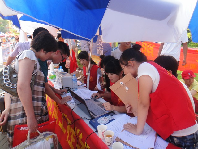 在大伙的积极合作下,工作有条不紊的继续着。男生们在烈日下举着港航的标志牌,一见新生们大包小包的上前,他们就涌上去忙着帮运行李,帮忙领沉甸甸的被褥草席。女生们在接待点注册学生个人的报到信息并分发各种资料和负责提醒他们去图书馆东厅注册等一系列信息,还给家长们准备水和凳子。接待过程中有找不到圈钱处的,有档案没有寄到的,有缴费没够的,出现了各种状况,但在大家的努力下,问题都得到了圆满的解决。