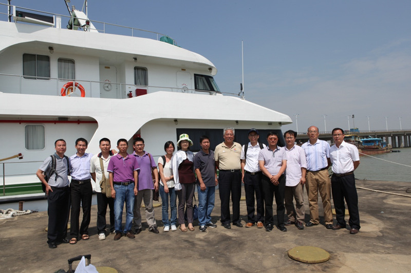 主持的规模最大,空间跨度最广的流域区域科学考察活动,科考从西江干流珠海、澳门上行,过三角洲一级分流节点思贤滘,经北江干流下行、过顺德水道、李家沙水道后,进入狮子洋、伶仃洋,最后由洪湾水道返回珠江西江流域管理局,科考全程历时3天,总路程400多公里(图2)。科考期间主要统计记录了流域堤防险工险段、涉河建设项目以及岸线滩涂利用保护等情况资料,现场重点观测了影响西北江水沙分配的思贤滘汊口的分流过程,勒流、焦门等水道的复杂流况;掌握了南沙港港口水深维持较好的“弱流环境”;收集了东四口门滩涂围垦资料;参观了“港珠澳大桥”桥梁施工作业的情况(图3)。科考后,水利部公益性课题组成员就此次科考进行总结,并对课题的后期工作进行讨论与部署(图4)。