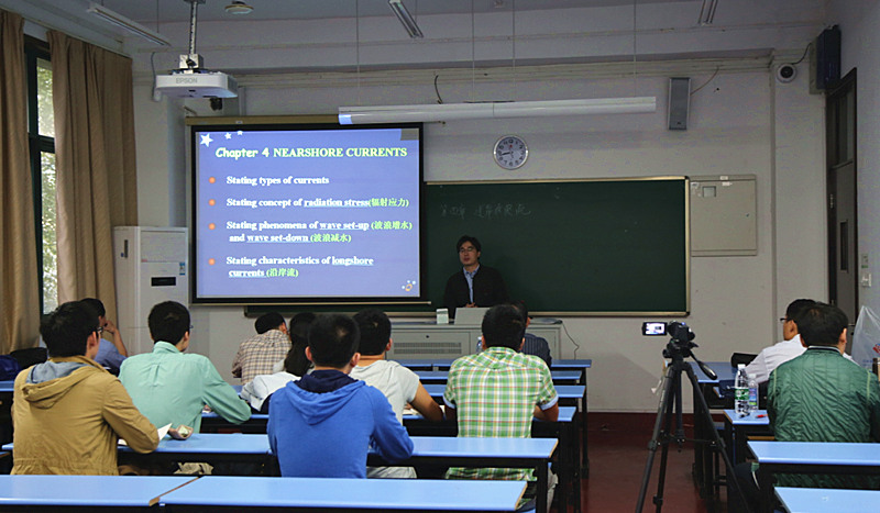 刘齐老师。此外,活动还在2011级和2012级大禹港航班邀请了8名学生参加了全程听课,其中3人上学期刚学过海岸动力学,其余5名尚未学习过。活动期间,两位青年教师分别进行了时长30分钟的试讲,试讲结束后,各位专家和学生从各个角度给试讲教师提出了宝贵的意见,为试讲者的讲课能力提升提供了很大的帮助。