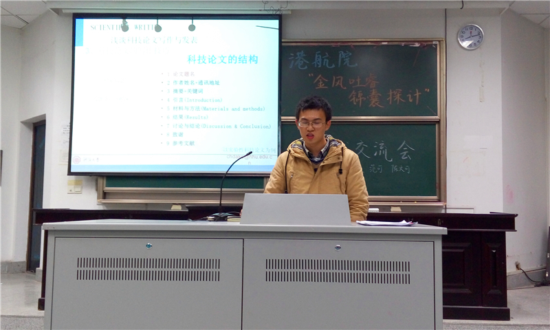 2014年11月23日,北京赛车PK10 “金风吐睿 锦囊探计”学术交流会在高B101举行,本次学术交流会由12级港航专业直博生范骏、陈大可及12级港航专业硕士生范可三位学术大神分别为我们带来关于创训、论文和专利的精彩交流。
