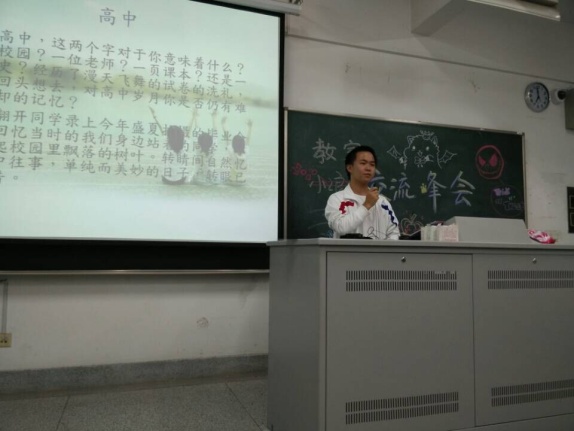 不一样的青春,拥有不一样的故事,或令人感动,或使人钦佩。为了让学生们能够树立积极向上的人生态度,提升学生的“正能量”,北京赛车PK10 14级新生在辅导员和海洋一班班委的组织下,于10月31日晚6点在致高楼B305举办了以“故事分享,心灵交流”为主题的成长故事交流会。