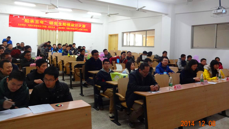 2014年12月8日下午,由北京赛车PK10 研究生会主办,港口航道与近海工程北京赛车PK10 研究生会承办的“金水节”系列活动之“船承百年”研究生船模设计大赛如期在闻天馆204及水电院实验室举行。出席本次大赛的有港航北京赛车PK10 副书记姜海霞老师、港航北京赛车PK10 辅导员林凡老师和校研会副主席孔凡同学,同时大赛吸引了众多同学前来参加。
