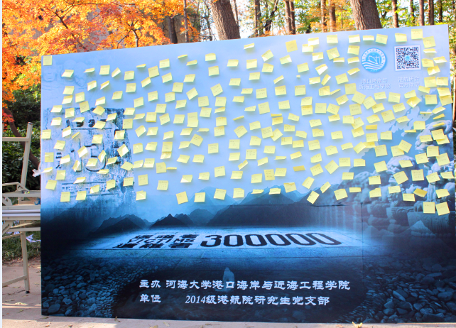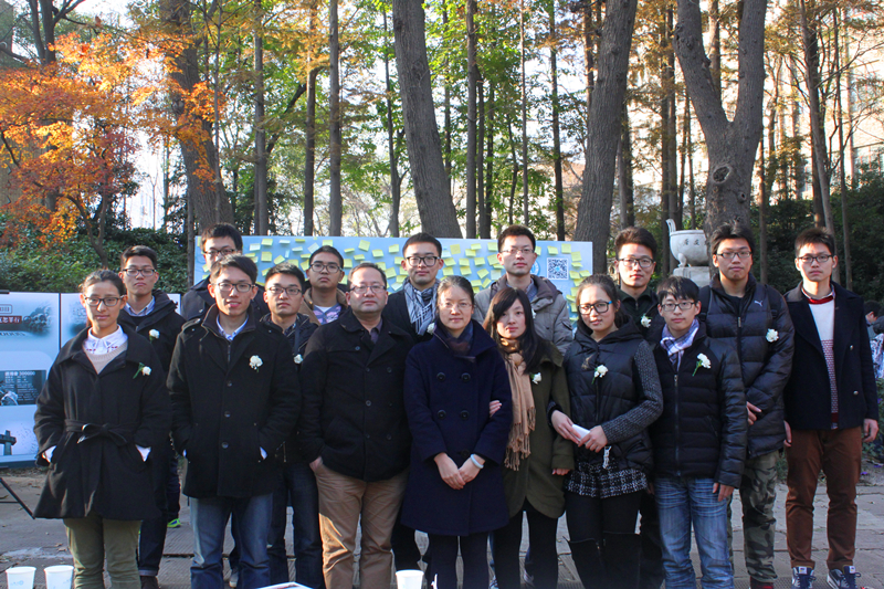 2014级研究生党支部主办,活动内容是向过往的学生和路人分发我们自己设计的公祭日宣传册,引导他们在心愿便利贴上写下自己的话语,并张贴在我们精心设计的祈愿墙上,以此表达我们对在南京大屠杀中遇难同胞的深切哀思和沉痛悼念。