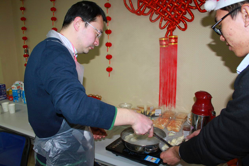 领导和老师也都全程参与其中,现场气氛一度达到了高潮。姜书记和陈院长为大家煮起了饺子,留学生们都是第一次包饺子,他们包出来的饺子造型独特,形状各异,但这丝毫不影响他们品尝饺子的心情。为了让这15位中港留学生在中国度过一个有意义的圣诞节,我们特地为留学生们准备了刻有他们中文名字的印章。郑院长更是亲自扮演起圣诞老人,给大家送上圣诞节礼物,也带来圣诞节的惊喜和感动。