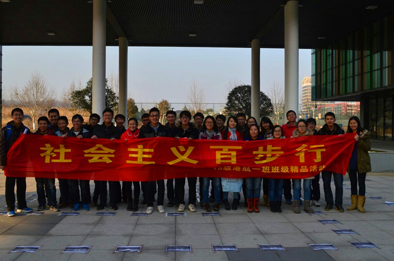 2014年12月29日,2013级港航1班在江宁文体中心前开展了“社会主义百步行”答题大富翁的活动,该活动是北京赛车PK10 支持的班级精品活动,积极响应了“我为社会主义核心价值观代言”的号召,港航1班全体同学和辅导员赵倩老师都参与其中。