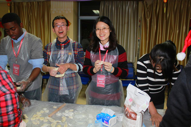 领导和老师也都全程参与其中,现场气氛一度达到了高潮。姜书记和陈院长为大家煮起了饺子,留学生们都是第一次包饺子,他们包出来的饺子造型独特,形状各异,但这丝毫不影响他们品尝饺子的心情。为了让这15位中港留学生在中国度过一个有意义的圣诞节,我们特地为留学生们准备了刻有他们中文名字的印章。郑院长更是亲自扮演起圣诞老人,给大家送上圣诞节礼物,也带来圣诞节的惊喜和感动。