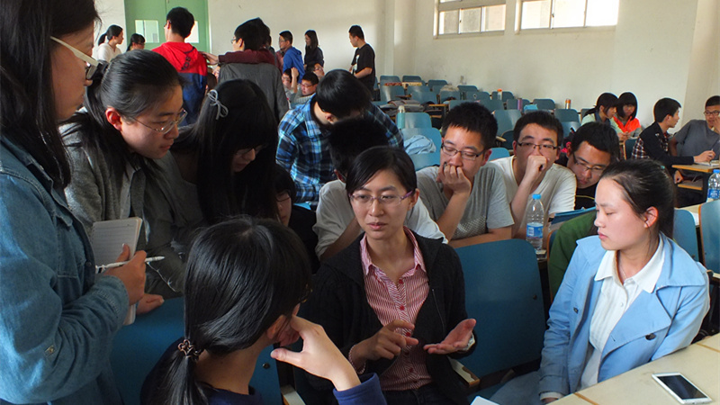 发言结束后,在王玲老师的组织下,同学们分成四组分别与学长学姐进行了将近一小时的交流。同学们纷纷提出自己在写作时遇到的困难,学姐学长们就他们的问题,耐心地一一作答。在交流过程中,学长学姐们不仅就实际问题给同学们提供了切实的帮助与指导,同时也结合他们自身的经历将一些感受和体会与大家分享,言谈间,他们的睿智与幽默深深地感染着同学们。现场交流气氛热烈,提问不断,最后的交流时间超出预期,反响强烈。