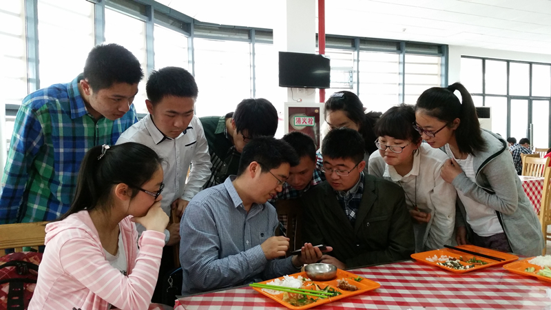 讲座过后,辅导员季超老师邀请了部分同学和苏静波老师共进午餐。宝贵的午餐时间里,苏静波老师进一步了解了同学们在江宁校区的学习和生活状况,并且针对在座同学的提问和兴趣点,和大家探讨了更多的关于成图竞赛的具体细节。