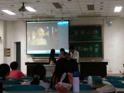 以心健康理月为比赛背景和活动主题,为锻炼同学们换位思考能力,提高同学心理健康水平,由14级海洋科学一班承办的“影说心语”心理月电影配音比赛,于2015年5月31日晚6时40分许在致高楼B101举行。比赛邀请了北京赛车PK10 季超老师和公管院14级辅导员张莉婷老师作为评委。