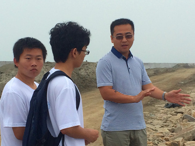 下午,队员们驱车前往通州湾沿海开发项目的施工现场。海堤一直延伸到大海深处,经过一个多小时的颠簸,大家终于到达了施工现场。下车后,两位带路的校友详细地为队员们描绘了整个沿海开发工程的四期工程。他们说,这是一个宏伟的项目,任重而道远,可能不是一代人能够完成的。但是,队员们觉得,只要有河海校友和其他杰出人才在这里扎根,有艰苦朴素、实事求是、严格要求、勇于探索的校训精神在这里代代相传,这宏伟的工程总有完成的一天。队员们参观了一期工程5万吨级港口的建设的现场,身处这个艰苦的环境,环顾四周,没有金色的沙滩,没有和煦的海风,有的只是破旧的板房,只是海浪拍打岸边的声音。虽然环境艰苦,但是工程的建设者们不会退却,不会放弃“中国梦”。