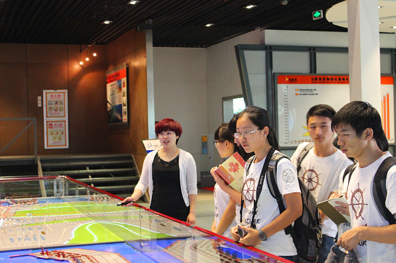 伴着如日照人民热情一般的似火骄阳,队员们开启了为期4天的日照港实践之旅。第一天下午,队员们参观了日照港展览馆。在初步了解了日照港的发展概况之后,大家纷纷惊叹于日照市能够依托港口发展得如此之快,而日照港的发展速度也令人咋舌,在短短三十年内吞吐量由几百吨跃升为现在的3.35亿吨,更是达到了全国第八、世界第十一的水平。日照市与日照港的发展紧密相连,十分重视港区规划与环境保护,并且还在不断摸索更加适合港城发展的模式,不得不说是港口城市迅速发展崛起的典范。