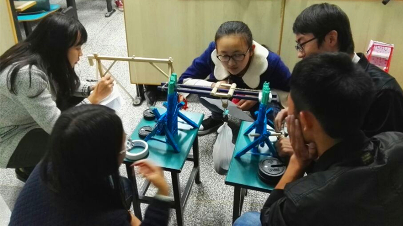 两点半,比赛正式开始,各组选手依次走上讲台,讲述自己的创意思路。从选手们极富感染力的答辩中可以看出,每一位选手都为自己的模型付出了无数的心血,经过巧妙的设计构思和数次的推翻重来,将模型从最初的雏形,渐渐磨砺出最后的佳作。 其中最值得称道的是大禹院王旭组的作品, ppt上列出的物理公式及现场实践的结果令同学们钦佩他们的缜密。北京赛车PK10