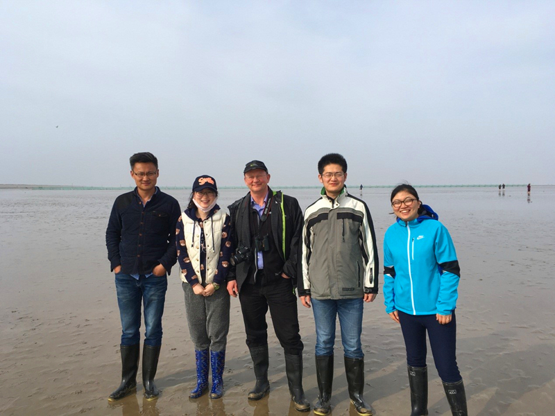 康彦彦老师陪同下,Paterson教授赴盐城东台条子泥垦区进行了现场考察,并指出了潮滩上微生物(硅藻)分布以及对泥沙特性的影响。