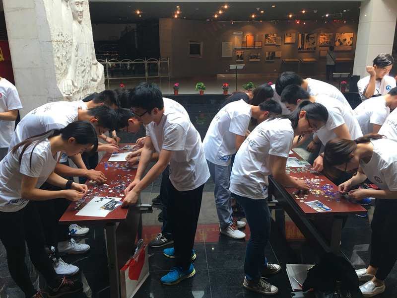 随后,同学们分为4个组,每组8人参与到活动中去。活动由党史知识竞答和历史图片拼图两环节组成,每组同学每次派出2人随机抽取题目,进入场馆寻找准确答案,同时,每组另外6名队员则进行以梅园新村纪念馆场景为图片内容的拼图比赛,等待答题同学回来轮换,总用时最短的组获胜。比赛中,答题的同学细致认真地在馆内寻找答案,不放过任何细节;拼图的同学分工协作,有条不紊。同学们在寻找答案的过程中,感受着那段艰苦历史背后的故事,也通过拼图比赛的方式,重温了很多历史细节,加强了对党史的学习和认识,同时增强了团队协作能力,提升了支部和班级的凝聚力。