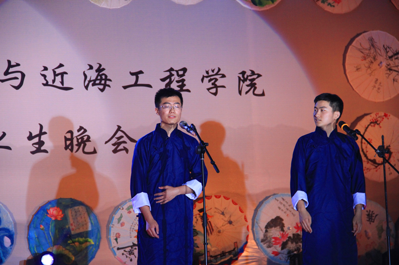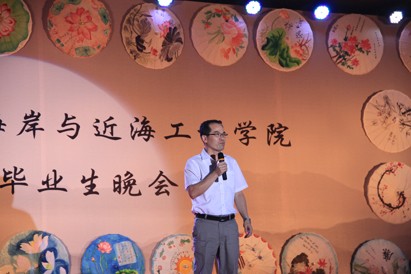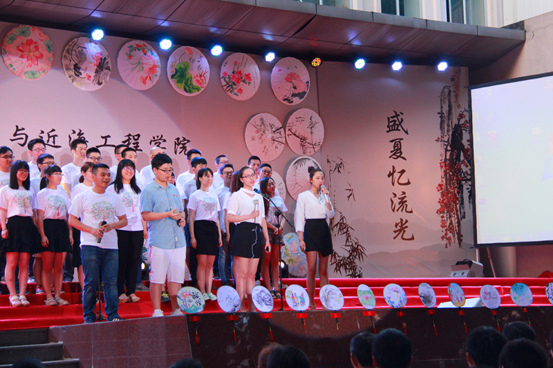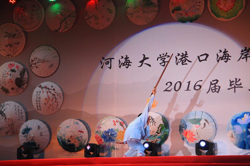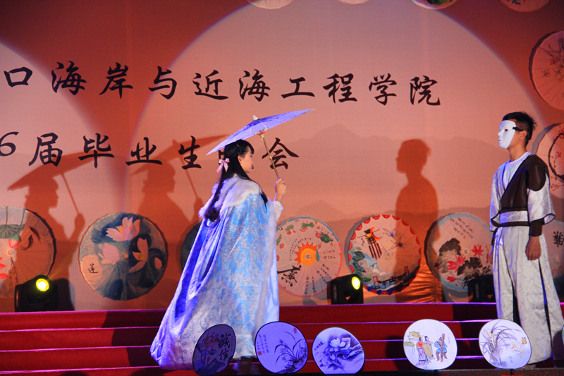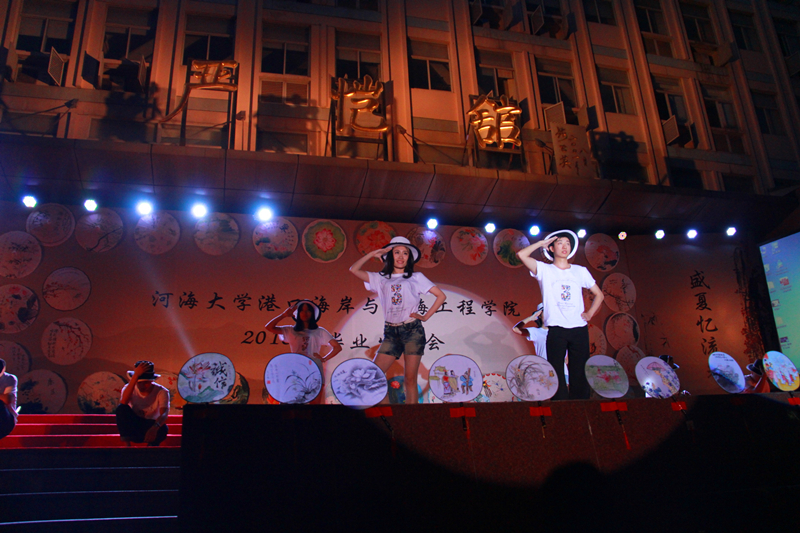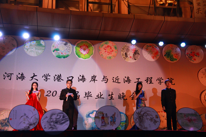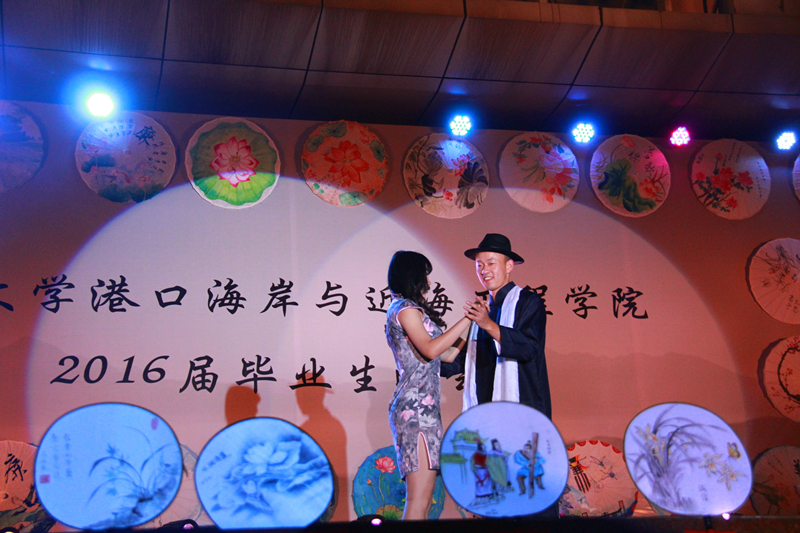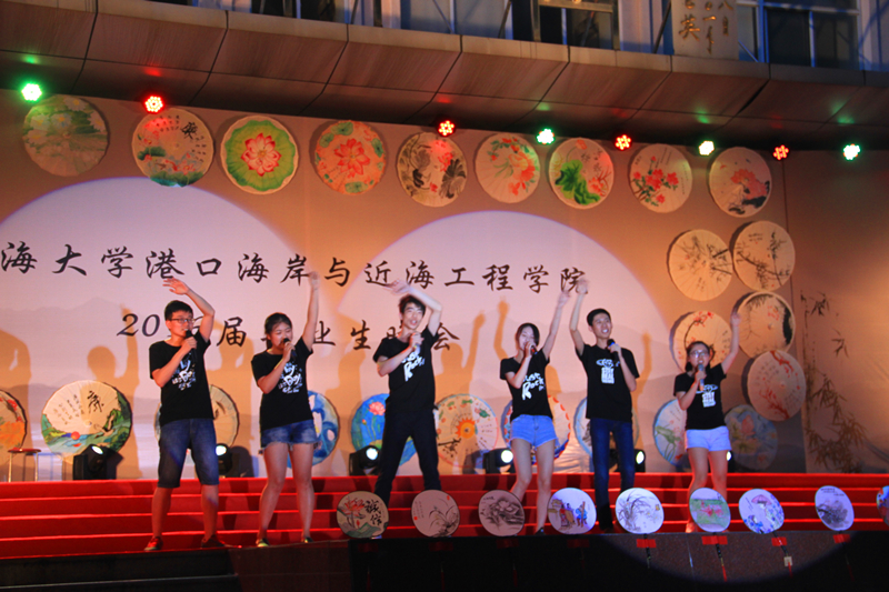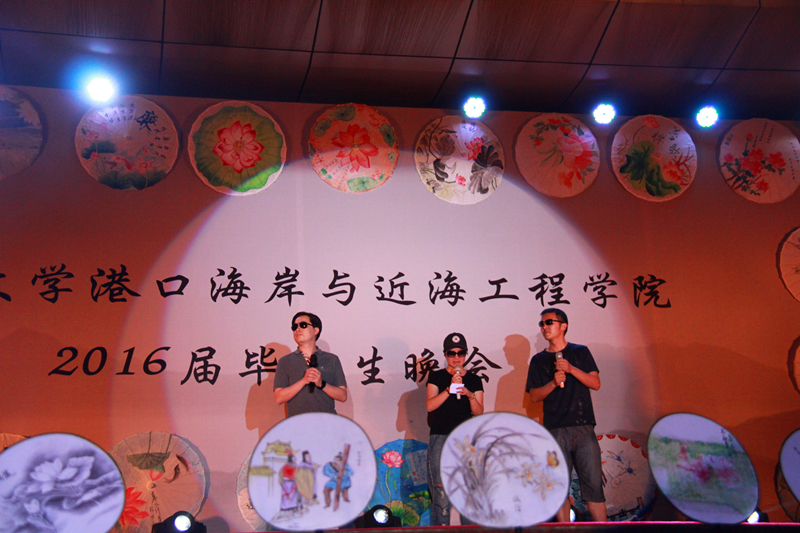 2016届毕业生自编、自导、自演,现场气氛温馨融洽、高潮迭起。晚会在研究生一段活力四射的啦啦操《青春派对》中拉开帷幕,合唱《南山南(河海版)》、话剧《五十年后》、相声《我的大学生活》、诗朗诵《如果在河海拥有爱情》等等形式多样、内容丰富的节目,无不表达了毕业生对大学生活的留念之情和对母校的深深祝福。晚会期间,郑金海院长亲自为毕业生献上祝福,邵宇阳、张弛、周晶晶三位班主任参与表演,为同学们的大学生活画上圆满的句号。