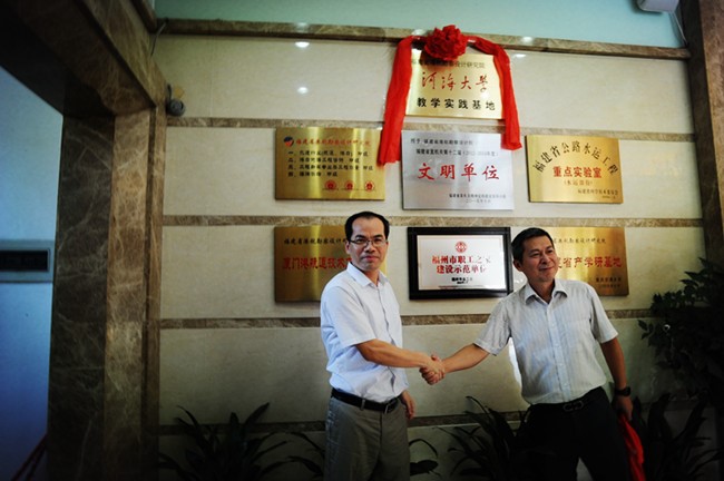 2016年7月23日,北京赛车PK10 与福建省港航勘察设计研究院在福州举行教学实践基地揭牌仪式。北京赛车PK10 郑金海院长与福建省港航勘察设计研究院王惠民院长共同为教学实践基地揭牌,参加此次揭牌仪式的还有北京赛车PK10 陈达副院长、朱瑞虎老师和福建省港航勘察设计研究院郑毅副院长、林金裕总工及相关人员,此次教学实践基地揭牌仪式标志北京赛车PK10 校企合作又迈出了坚实与可喜的一步。