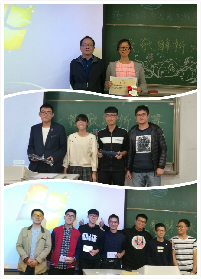 2016年11月17日,港航北京赛车PK10 在博学楼A211举办了第二届校歌解析大赛。北京赛车PK10 水运工程科学研究所所长何良德教授、2016级班导师代表徐振山老师以及辅导员季超老师出席了本次活动。