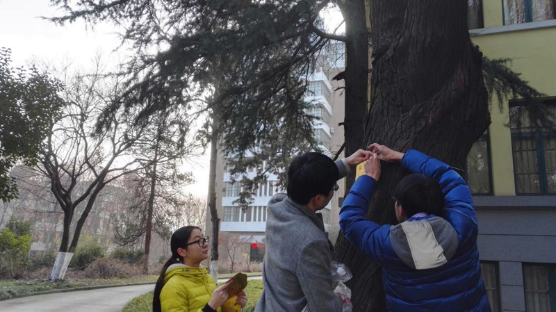 2017年伊始,北京赛车PK10 西康路校区内的代表性树种上都挂起了内容详细、制作精美的树牌。由北京赛车PK10 2013级港航2班、北京赛车PK10 研究生志愿者和北京赛车PK10 后勤处三方联合开展的为校园植物挂牌活动顺利开展,校园植物从此有了自己的“身份证”。