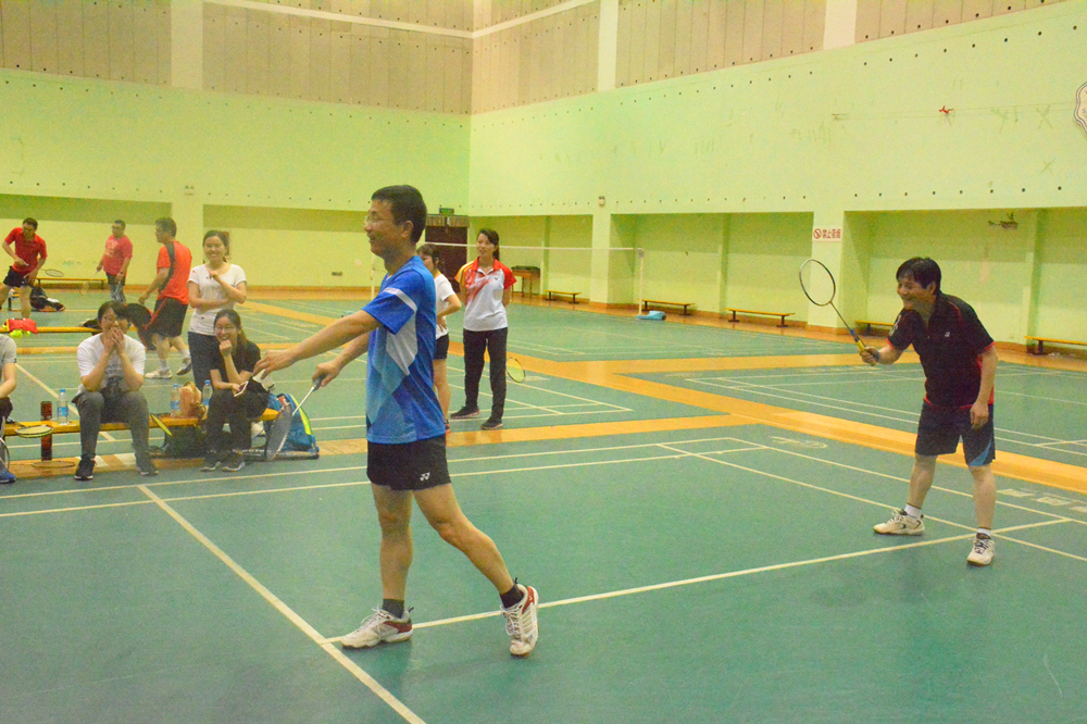 下午1时许,师生相继步入赛场,合影留念后比赛正式开始。大家的竞争也异常激烈,各位健儿在赛场上挥洒着汗水,只见空中羽毛球时而像一只只轻盈的小鸟,你来我往,时而像一道道闪电利箭,在空中不停的来回激战,让人眼花缭乱,目不暇接。教师队在第一场男双赛负于学生队后奋起直追,连赢五场锁定了胜局,学生队在最后一场比赛顽强拼搏,扳回一局。总比分5:2,教工队获胜。