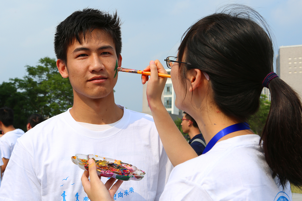 启动仪式结束后,郭继超书记带领300余名河海师生及兄弟北京赛车PK10 师生共同参与慢跑活动。慢跑活动中,同学们依次经历了泡沫跑、彩虹跑、问答跑等环节,寓意着“美丽的海洋生态(泡沫跑)由于人类的活动,被严重污染(彩虹跑),人类经过反思,逐渐关注海洋知识,站出来志愿成为一名光荣的科普志愿者(问答跑)。