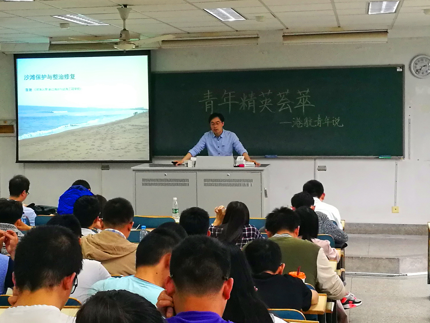 2017年6月5日下午,港航青年说精英荟萃,张弛、薛米安、贺瑞三位老师受邀来到江宁校区致用楼218教室,为同学们介绍了三个不同的研究领域,讲座吸引了15、16级100多位学生的参加。