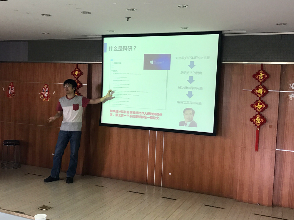 海岸带资源与环境研究所所长——陈永平教授,主要从事与风暴潮预警、射流以及岸滩防护方面的研究,他重点介绍了目前在研项目清单以及所在团队的培养模式,介绍了近几届毕业生的去向分布,在场同学都投来了羡慕的目光。第二位上场的是冯兴国副教授,他主要从事不锈钢钢筋混凝土结构以及高效阻锈剂方面的研究,重点讲解了不锈钢钢筋在工程中的实际运用。第三位是研究水动力和海洋防护方向的潘毅副教授,他以Win10的常规更新作为比拟,向同学们生动形象地介绍了科研的过程,从海岸工程方面的经典问题延伸到当前遇到的新问题,其幽默的演讲方式感染了在场同学。最后是海工装备与水下技术研究所所长——徐鹏飞教授,他主张“海洋是人类的战略空间”,主要从事深海结构与航行器设计的研究,和之前来宣讲的老师们研究方向有所不同,拓展到了海洋工程,给同学们耳目一新的感觉。