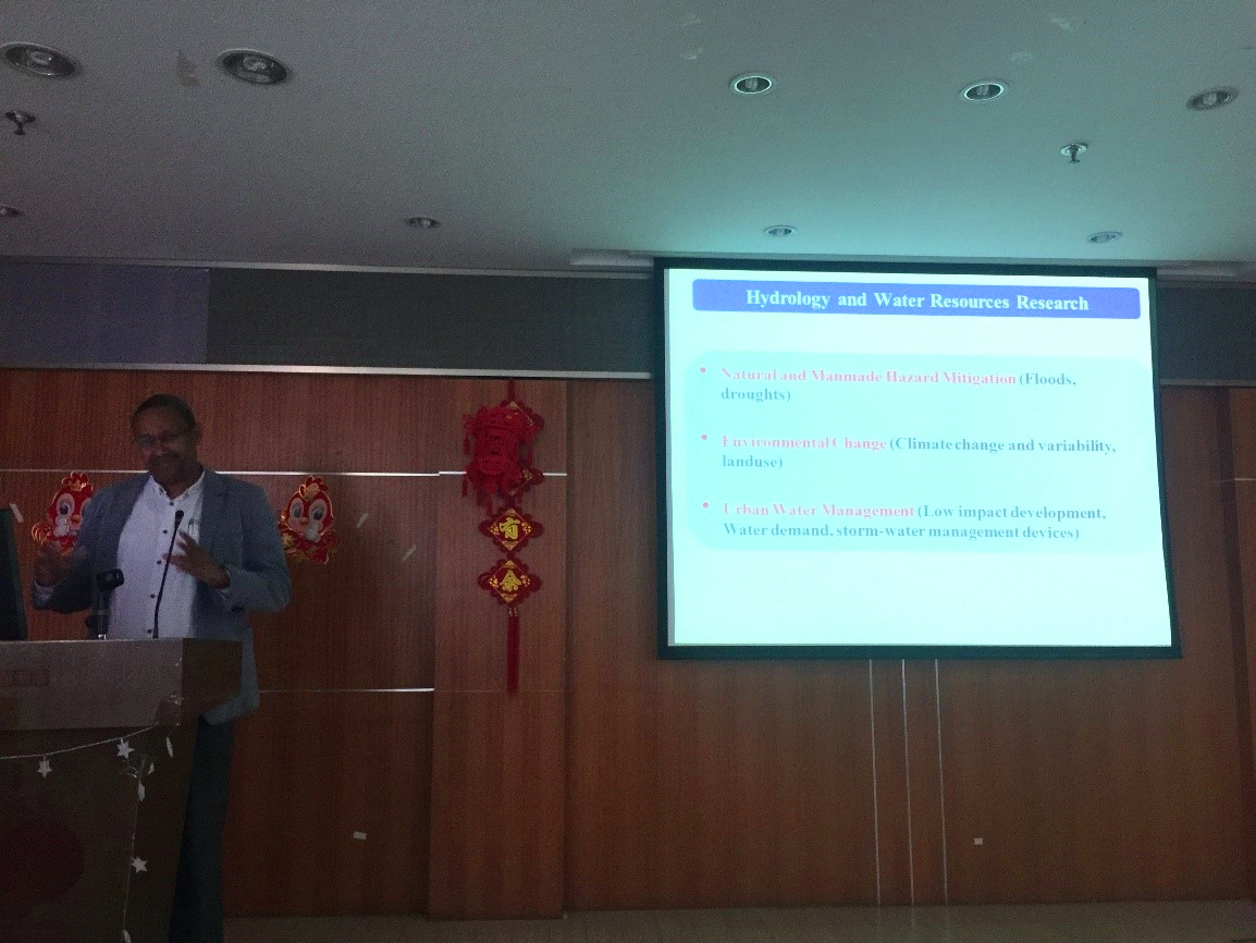 研讨交流会上,Colin Whittaker博士作了“Impact of tsunami wave and extreme wave on coastal infrastructure”的学术报告,展示了奥克兰大学水利系在海岸灾害模拟的创新物理模型试验技术及最新研究进展;Asaad Shamseldin副教授作了“Research work conducted at the University of Auckland in areas of natural hazard mitigation, environmental change and urban water management”的学术报告,展示了奥克兰大学水利系在水文水资源领域的最新研究动态。