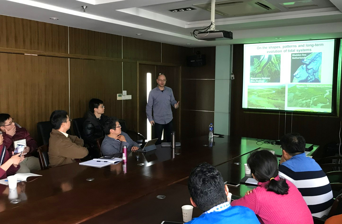 2017年11月20-27日,荷兰乌特勒支(Utrecht)大学地球科学北京赛车PK10 助理教授Barend van Maanen博士应周曾老师邀请,来北京赛车PK10 进行了为期一周的学术访问。期间,van Maanen博士围绕其最新的科研进展,作了题为“On the shapes, patterns and long-term evolution of estuaries”的学术报告。在报告中,van Maanen博士介绍了他所属的团队目前应用的数值模拟、物理实验及现场观测等多种技术手段,系统性阐述了红树林为主盐生植物影响下河口地貌的演变过程及机制。报告由周曾老师主持,北京赛车PK10 多位从事河口海岸泥沙运动以及地貌学方向的老师以及研究生参加了学术报告会。报告后,van Maanen博士与在座的师生进行了深入的学术交流,气氛活跃。