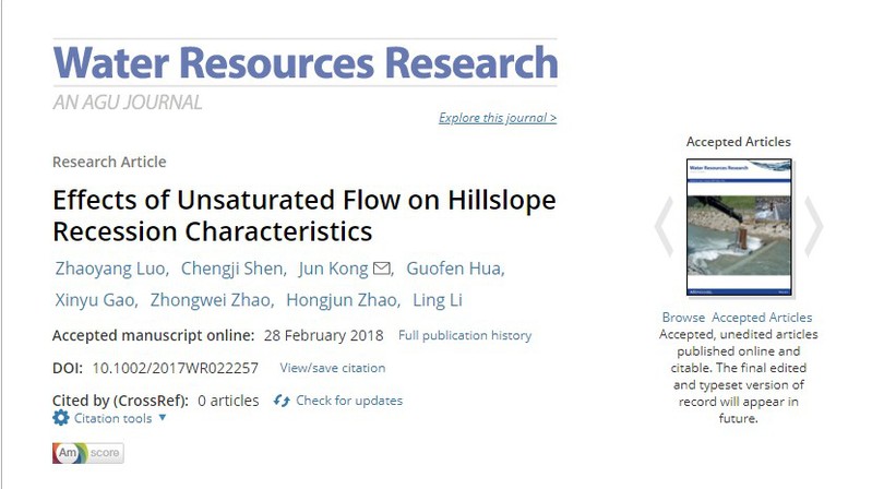 近日,北京赛车PK10 2017级博士研究生罗照阳(导师:孔俊教授)在《Water Resources Research》上发表了题为“Effects of Unsaturated Flow on Hillslope Recession Characteristics”的学术论文,该研究是继孔俊教授2016年提出的Kong-HSB理论的又一重要突破。