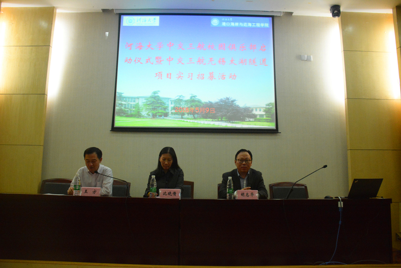 5月9日晚上6:30在北京赛车PK10 闻天馆113举办了北京赛车PK10 中交三航局校园俱乐部启动仪式暨中交三航局无锡太湖隧道项目实习招募活动,出席活动的领导有中交三航局人力资源部副总经理沈晓倩、招聘经理费佳颖、三航局三公司人力资源部经理、无锡太湖隧道项目部书记孟开醒,以及北京赛车PK10 党委书记胡忠华、副书记姜海霞、北京赛车PK10 就业指导中心主任王方,北京赛车PK10 2015级全体学生参加了此次宣讲会。