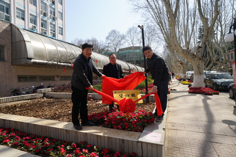 在“开工第一铲”仪式中,郭祥林处长、康红强书记、胡忠华书记、吴青山副处长、姜海霞副书记与学生代表在严恺馆台阶旁,齐力种下了一棵海棠树,为植树活动开启了良好的开端。随后,各组师生在专业技术人员的带领下正式开始了杜鹃花苗圃的种植。后勤处和北京赛车PK10 的各位领导老师也纷纷“撸起袖子”,负责了1号花圃的栽种工作,为同学们树立了良好的榜样。在紧张有序的栽种后,由各组学生代表将写有2019届全体本科毕业生未来三年小目标的“梦想合伙人”红丝带系于园圃的树枝上,以见证同学们的成长。活动最后,康红强书记、郭祥林处长、胡忠华书记为“望归圃”举行了揭牌仪式,象征着活动圆满结束。