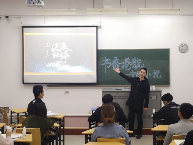 本场主题为中国小说,在主持人孟宪楠介绍了本场交流会的主题之后,彭泽曦同学带来的《一句顶一万句》拉开本场序幕。对于这本书,彭泽曦同学在介绍了书本内容的基础上,还和大家分享了他最喜欢的句子,并谈了谈自己对于这些句子的理解,对于书的认识,并推荐了同名电影。与彭泽曦先看书再看电影的顺序不同,郭蓝天同学则是通过寒假大热电影《流浪地球》产生了对于原著的强烈兴趣从而读了刘慈欣的同名小说。