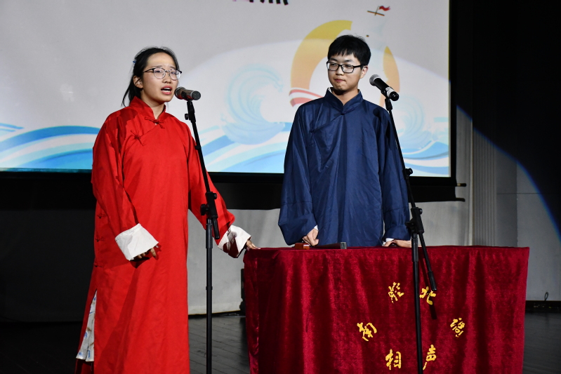 晚会在曳步舞社的“曳步舞”中拉开序幕,快速流畅的舞步,伴以重鼓、电音以及多种乐器交杂的舞曲让全场气氛快速沸腾。紧接着由2017级港航4班带来的歌舞《少年游》讲述了同窗青葱的故事,勾起同学们在江宁两年生活的点点滴滴。回忆之余,诙谐幽默的相声《五红图》引得台下观众笑声不断。深情的吉他弹唱《当我想你的时候》如泣如诉。诗歌朗诵《伶仃洋》令人肃然起敬,带领同学们感受港珠澳大桥的宏伟,领悟水利建设先辈的工匠精神。接着在曳步舞的暖场下,晚会进入游戏环节。