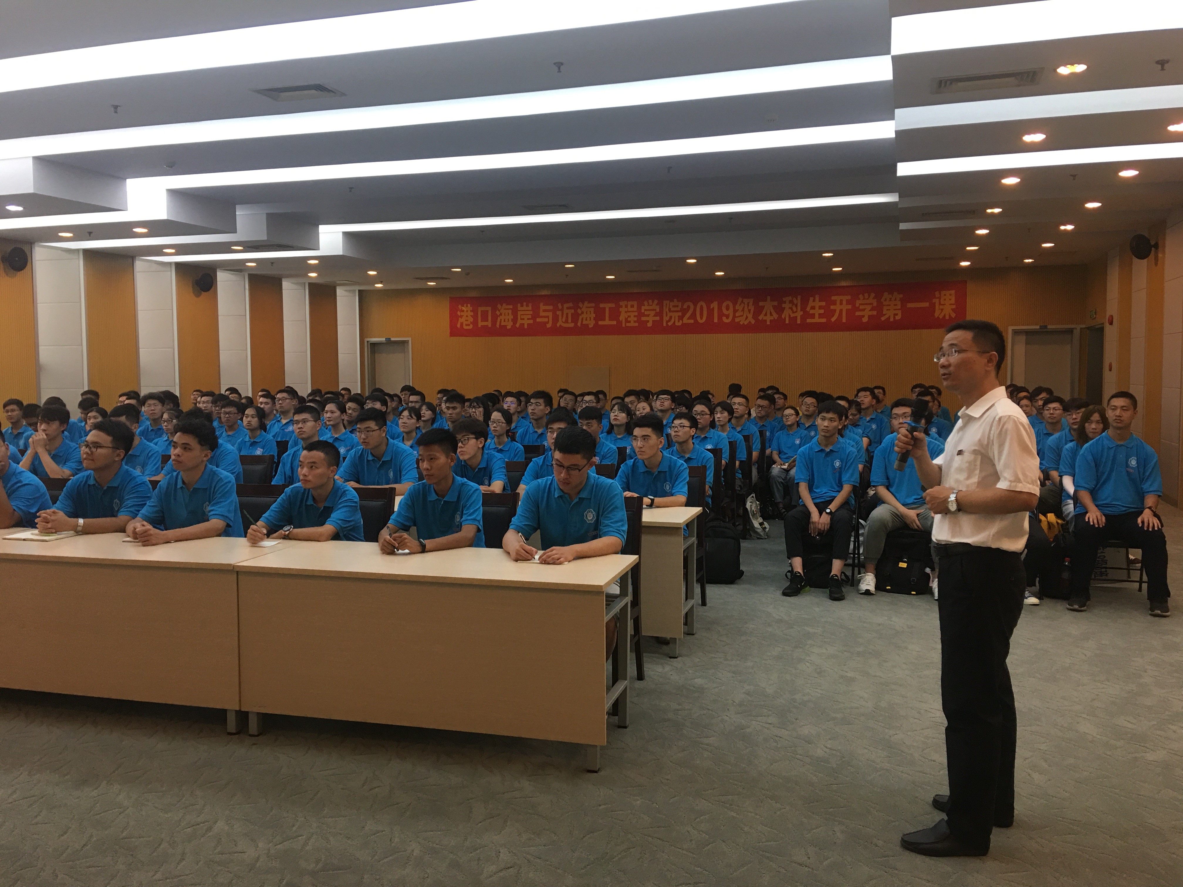 典礼结束后,龚政院长以“港航海资,携手前行”为主题给2019级本科新生讲授开学第一课。他以“河海”、“水利”、“港航”、“海资”四个关键词为引言,从发展历程、发展现状和卓越贡献三方面简略介绍了北京赛车PK10 ,从发展历程、师资队伍、学科专业和教学教育四个方面介绍了北京赛车PK10 ,并以港口工程、航道工程和海岸工程三个板块阐述了港口航道与海岸工程和海洋资源开发技术两个专业的精髓所在,同时他用“舟楫之便,向海而兴”八个字强调了两个专业的意义与优势所在。在龚政院长细致的介绍下,新生们初步了解了北京赛车PK10 的发展历史和专业发展趋势,并就军港建设和科研两个方面提出了疑问,龚院长为此一一解答。