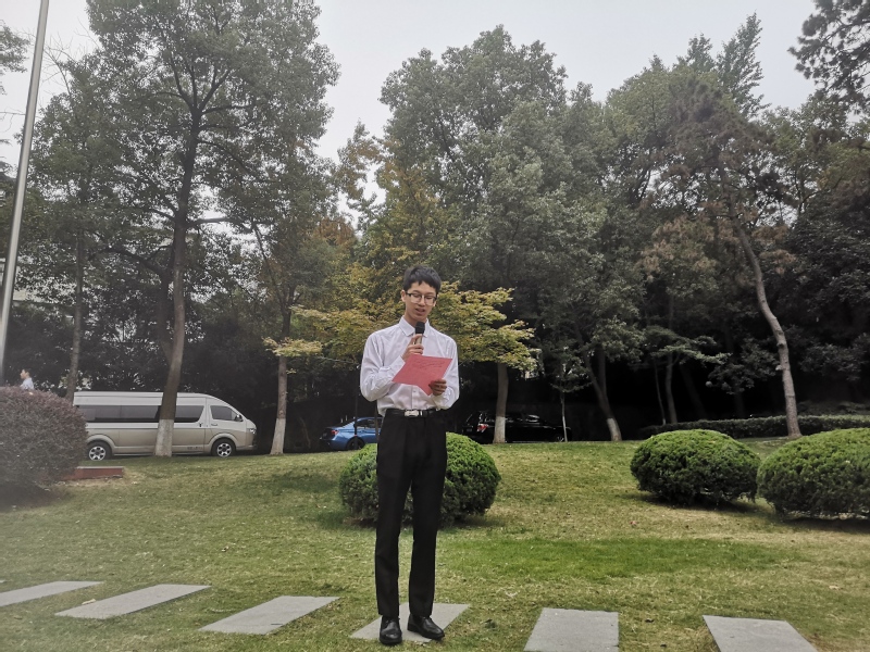 全体参会者在国旗前排列整齐,伴随着 《义勇军进行曲》 的响起,参会者集体行注目礼,全场弥漫着庄严肃穆的气息。2017级本科生代表党员代表范琦琦进行“祖国在我心中”国旗下演讲。