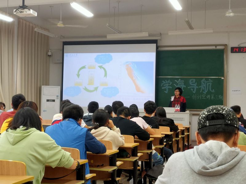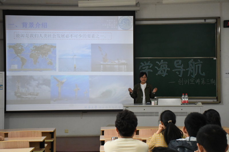 最后,卢向雨老师从背景介绍、海水电池发展趋势以及长航时海水海水电池技术攻关三方面对她的在研项目——长航时海水电池关键技术研究进行了详细介绍,并向同学们分析了该研究项目的未来前景以及应用领域。