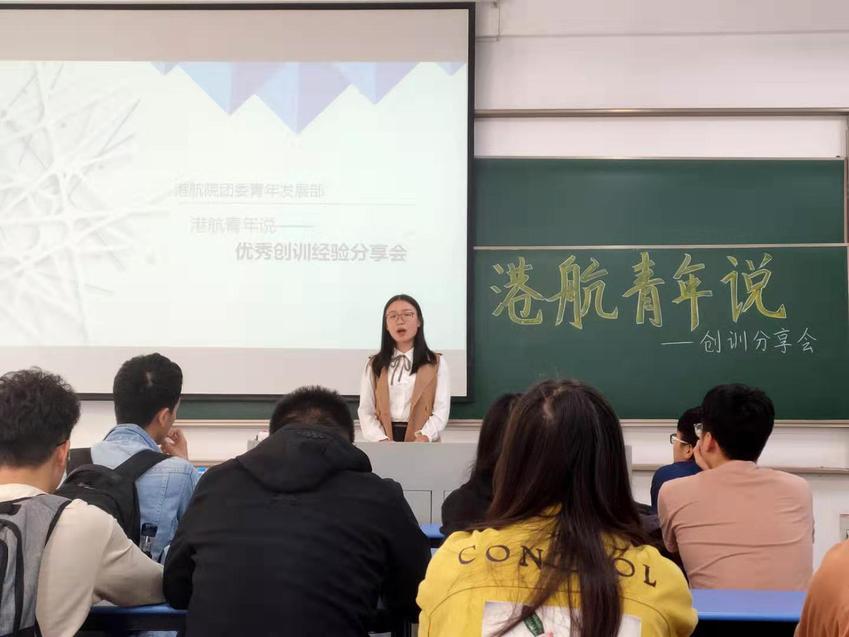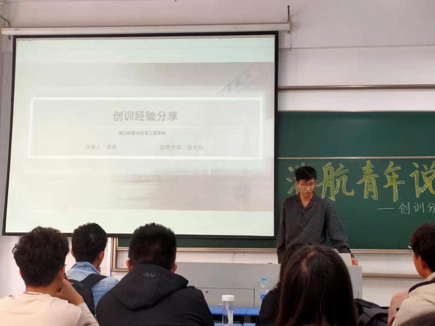 2019年10月24日,港航青年说之创训经验分享会于励学楼107举行。此次分享会邀请到陈诗佳、张骆宁、李昊和罗梦岩四位优秀的同学为2018级本科生讲解他们的创训经验,并与他们进行面对面交流。