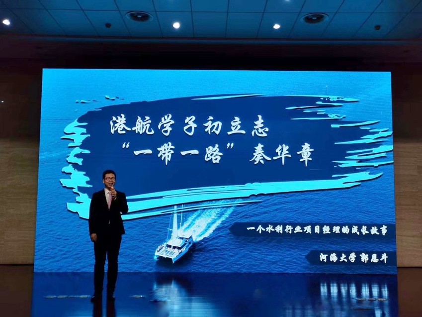 在省决赛中,本科生组32名来自各高校的选手同场竞技。职业目标是扎根海外的水利行业项目经理的郭恩斗同学,从港航工程建设中的河海校友讲起,阐述了自己的职业生涯规划,分享了职业体验的经历和感想,展现了港航学子踏实肯干的坚毅品质和积极参与国家建设的报国壮志。