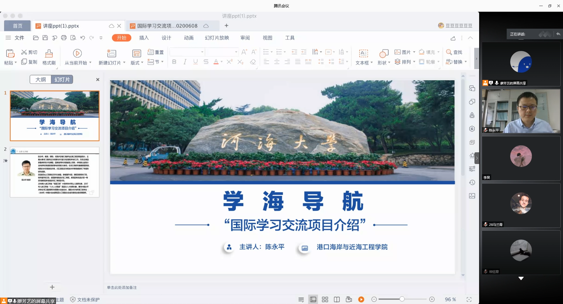 2020年6月8日上午十点,北京赛车PK10 邀请北京赛车PK10 陈永平副院长和国际交流北京赛车PK10 胡宁宁老师为2019级本科生做“国际学习交流项目介绍”专题讲座。