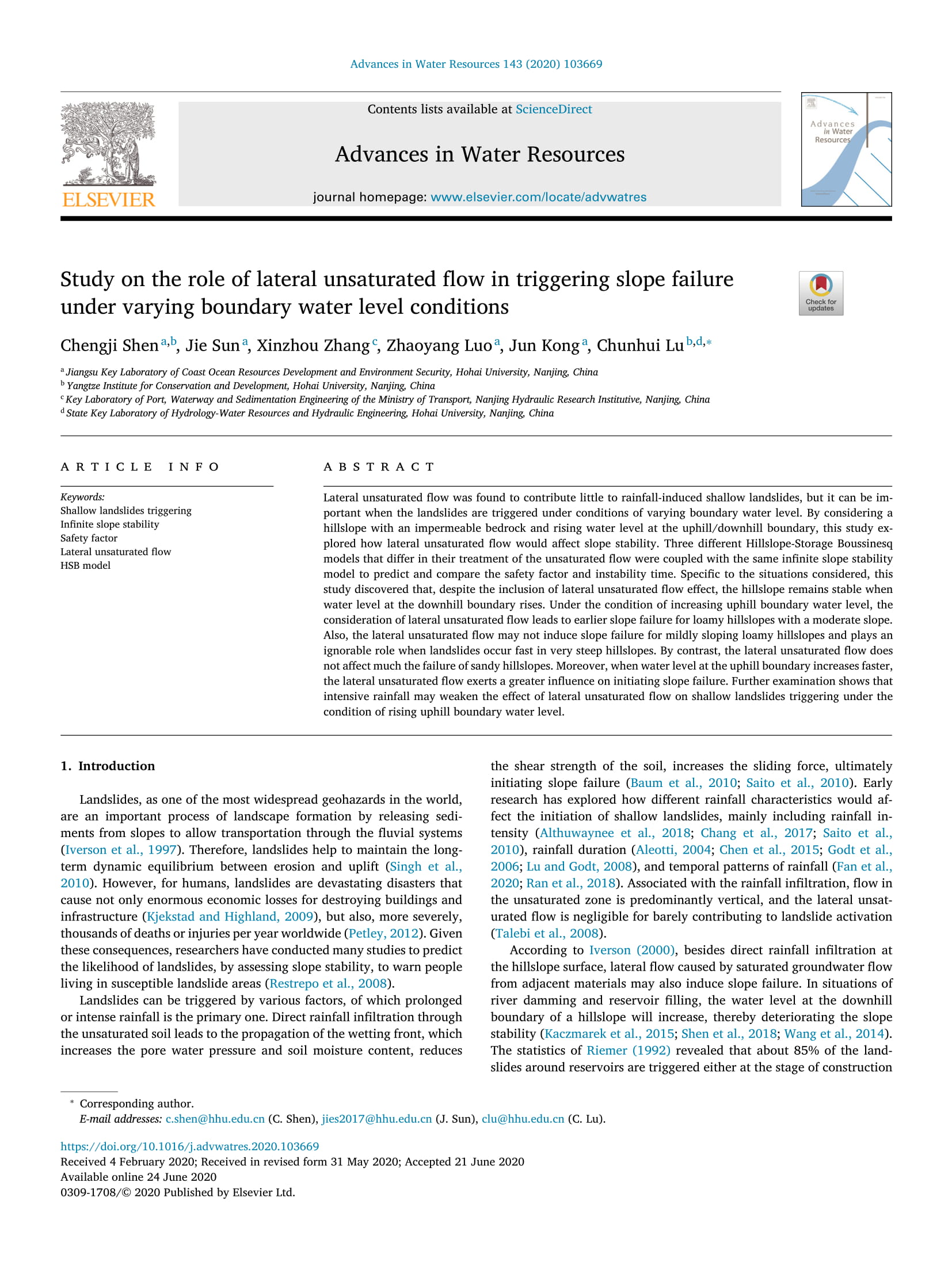 近日,北京赛车PK10 海防所教师沈城吉博士、孔俊教授等在国际权威期刊《Advances in Water Resources》上发表了题为“Study on the role of lateral unsaturated flow in triggering slope failure under varying boundary water level conditions”的学术论文。
