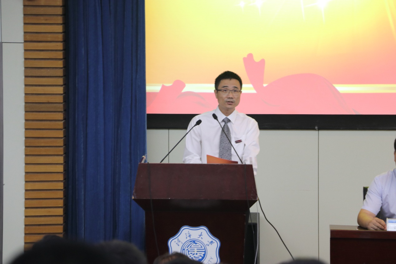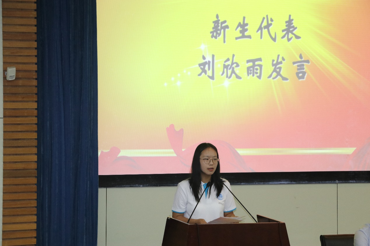 教师代表时健老师在发言中结合自身在学习经历,与同学们分享了成长的体会与感悟,鼓励学弟学妹们要练就逆水行舟的过硬本领,要发扬滴水穿石的精神和饮水思源的品格,要不断追求上善若水的人生态度。刘欣雨同学代表2020级新生发言,表达了对河海、对港航的热爱,表示将以“艰苦朴素、实事求是、严格要求”十六字校训指引,脚踏实地追求自己的理想,书写新一代港航人的青春荣光。