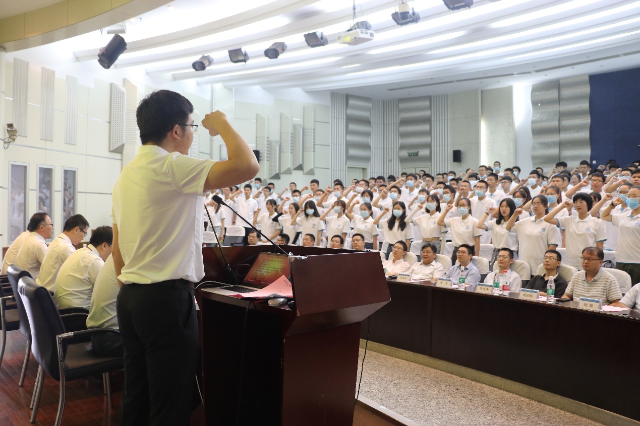 2020级辅导员林晨老师带领新生宣誓——做一名合格的港航人。典礼在师生共唱校歌中落下帷幕。