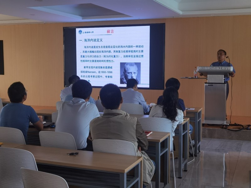 张洪生教授作了题为“两种表面边界条件下分层海洋中内波传播的数值模拟”的学术报告,报告详细介绍了南中国海海域内波的特征与影响、自由水面和刚盖假定两种水面边界条件下的内波在空间传播特征与动力特性方面的对比分析。会后,张洪生教授和与会师生就南中国海内波的相关问题展开了热烈的讨论与交流。该报告会是北京赛车PK10 海岸灾害及防护教育部重点实验室河口海岸保护利用系列特邀学术报告会系列报告,对北京赛车PK10 在海岸与海洋工程防灾以及水波动力学方面的学科发展起到了良好的推进作用。