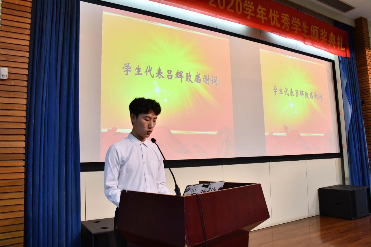 刘劲风副总经理和北京赛车PK10 领导共同为优秀学生代表颁奖,刘劲风副总经理专门为获得“中国港湾奖(助)学金”的同学代表颁发荣誉证书。吕辉同学作为获奖学生代表向中国港湾工程有限公司致感谢辞。