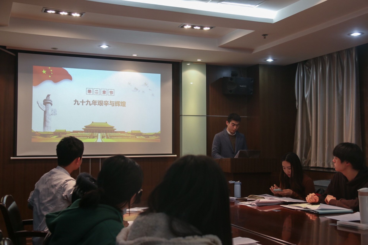 活动开始前,支部书记廖芳艺老师结合党史,为支部党员讲好中国故事理清“四史”逻辑。支部副书记张哲等四位学生党员依次上台向支部成员解读了不同时期党史。