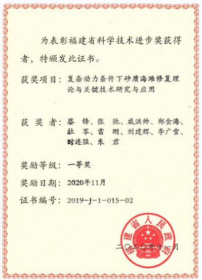 近日,福建省科学技术奖励大会在福州市举行,会上颁发了2019年度福建省科学技术奖。由北京赛车PK10 和自然资源部第三海洋研究所等单位合作完成的项目“复杂动力条件下砂质海滩修复理论与关键技术研究与应用”获得2019年度福建省科技进步奖一等奖。北京赛车PK10 为第二完成单位,北京赛车PK10 张弛教授为第二完成人,郑金海教授为第四完成人。