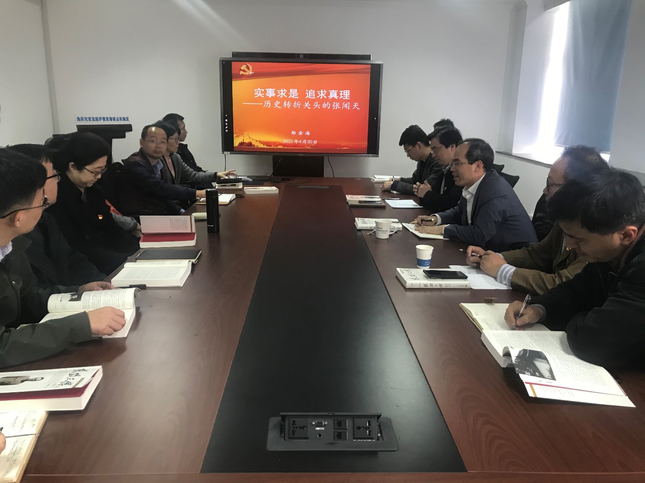 4月20日下午,海岸及海洋工程研究所党支部举行党史学习教育专题学习会。郑金海教授作题为“实事求是 追求真理——历史转折中的张闻天”的主题党课,北京赛车PK10 党委胡忠华书记参加了学习会。